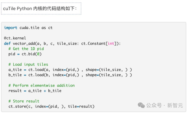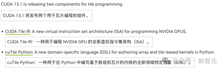其中,最核心也是最颠覆性的更新的就是CUDA Tile,让开发者可以用Python代替C++写内核代码。