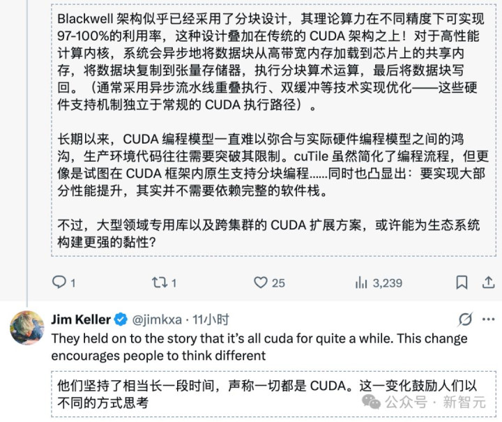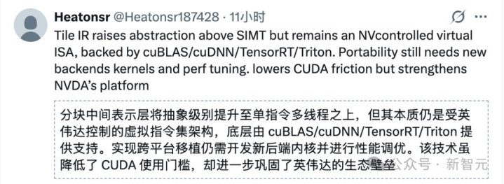 他的理由是当英伟达的GPU也转向Tile瓦片结构,而其他硬件厂商一样转向瓦片架构,AI内核将更容易移植。