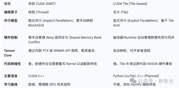 通过这种对比可以看出,CUDA Tile实际上是英伟达对AI编程范式的一次「降维打击」——将复杂的硬件细节封装在编译器内部,只暴露算法逻辑。
